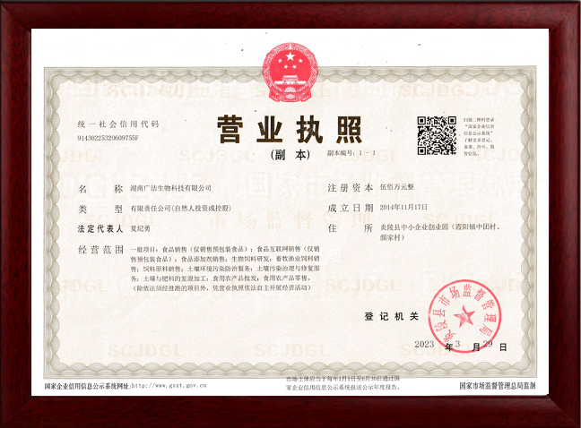 廣潔生物企業(yè)標(biāo)對照檢測報告